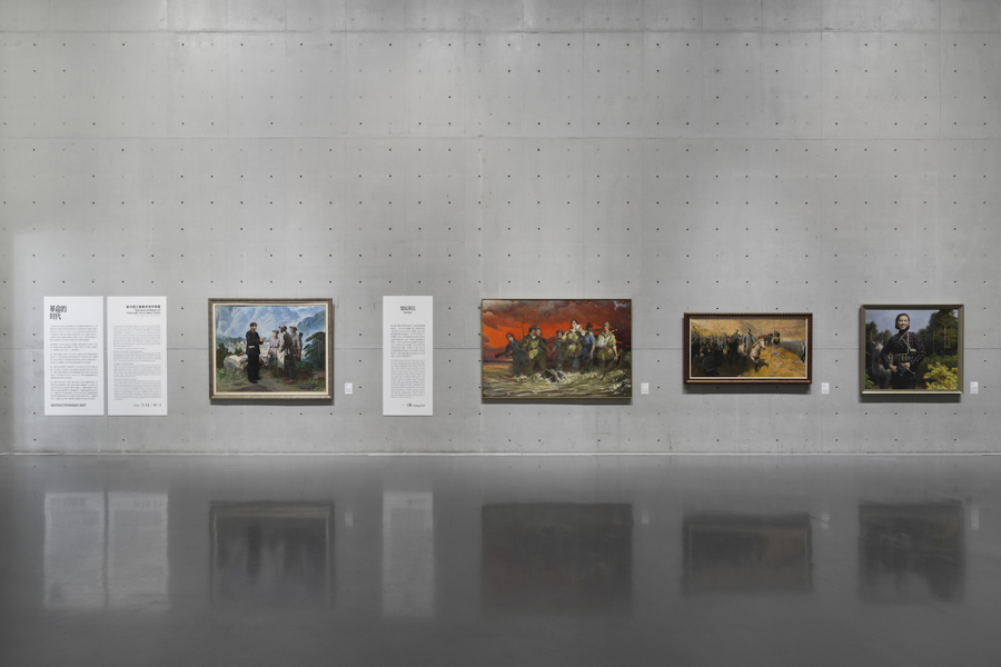展览中,“领袖与革命”板块主要汇聚表现毛泽东所领导的共产党革命历史的主题创作,以及以表现共产党所领导的革命军队在保家卫国的历程中,从星星之火到燎原之势,进而走向胜利的历史过程创作。观众能从画面中看到红军长征、抗日战争、解放战争、抗美援朝战争等一系列战争折射的中国共产党的革命历史,既有重要的战役和决定成败的指挥,又有典型的事件和具体的人物。这些作品通过不同的构图方式,或展现宏大的场景和内在的人物关系,或以不同的形式语言表现历史题材创作的时代特色。