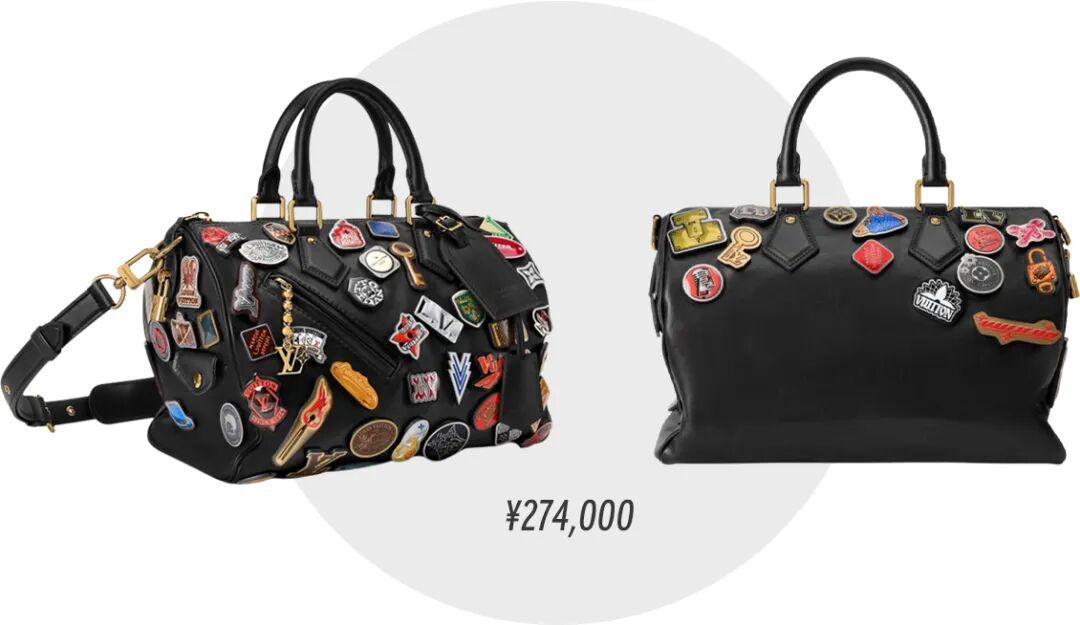 从细节看,它在黑色皮革上装饰上了数量众多的徽章,很容易让人到千禧年代的原宿街头文化。
