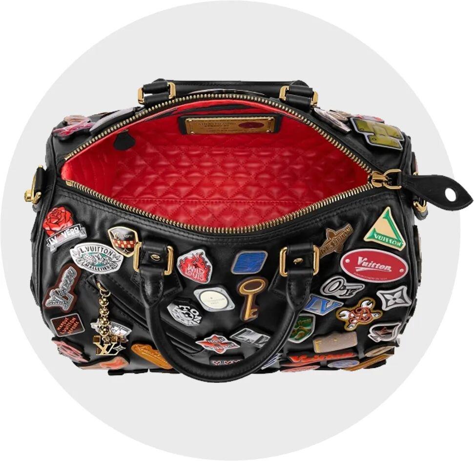 怎么就可以卖到如此高的价格呢?还是回到细节。包身采用的是黑色蜡面皮革,包面则装饰了超过70枚手工制作的徽章,有着不同风格和字体的品牌标志性符号,更厉害的是它连内衬都做成了绗缝牛皮革材质。