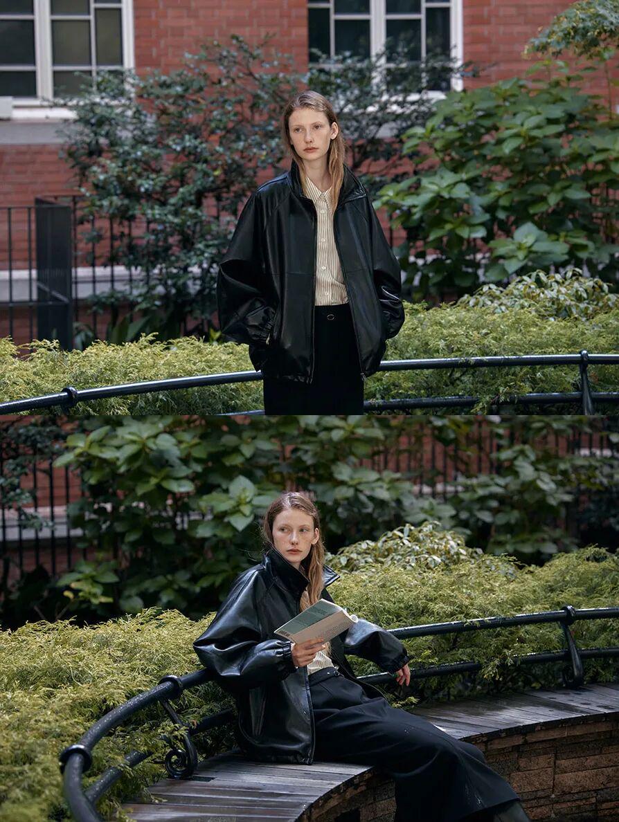漏斗领皮衣