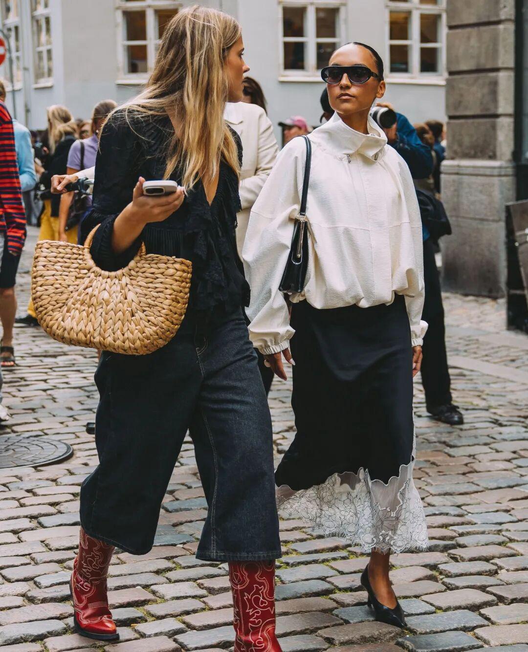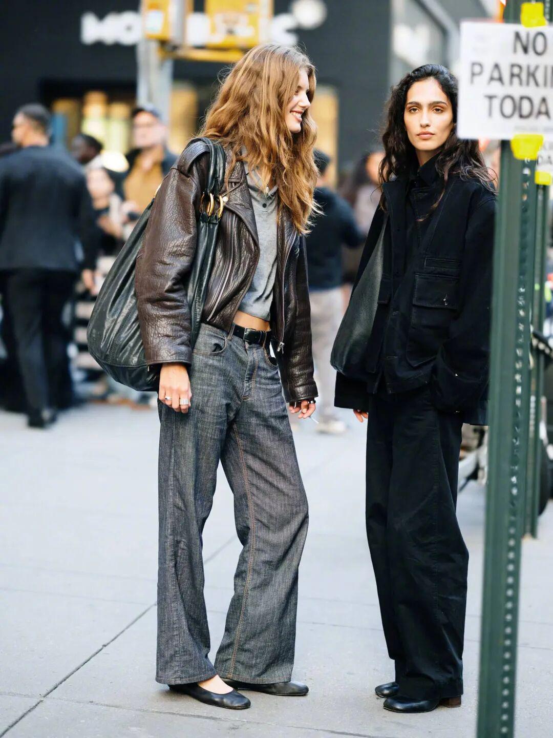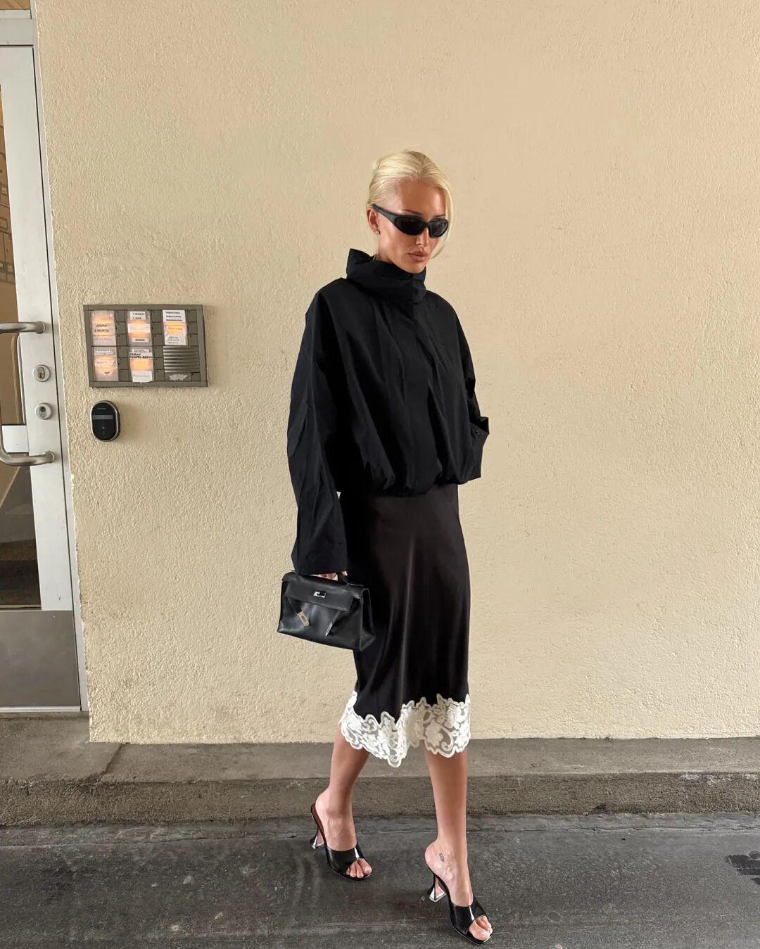 欧美博主则喜欢换上黑色细带小高跟,夹克一脱就可以过夜生活了哈哈。▼