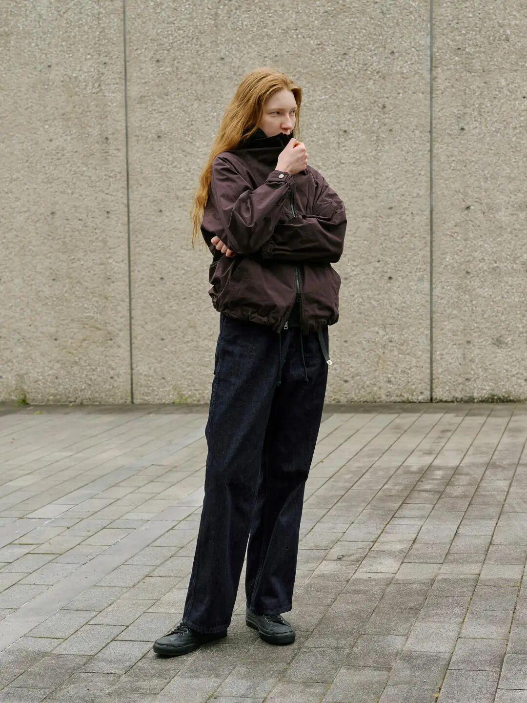 一种是顺着漏斗领外套的风格走帅气风,下装选择十分长裤,穿上鞋子后刚好及地最佳。▼