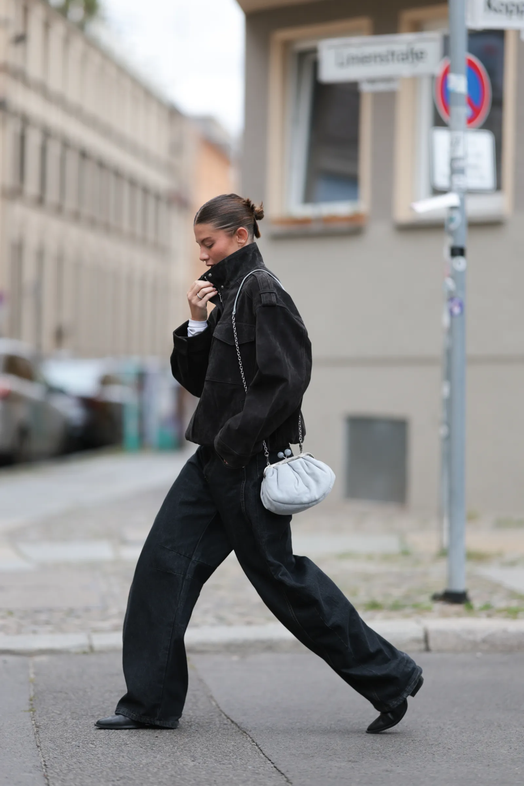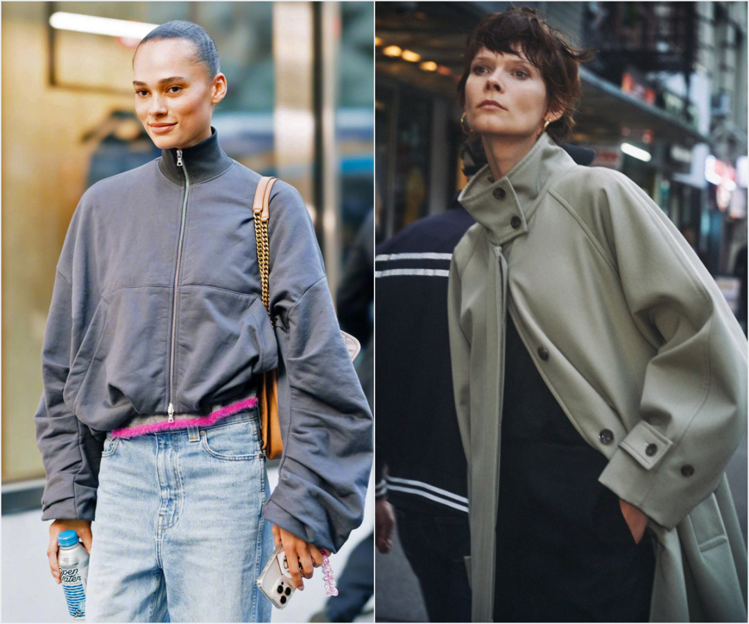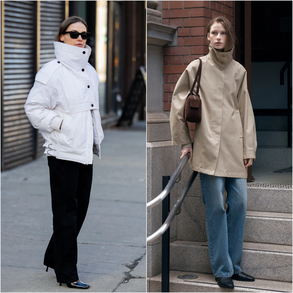 还有一个省钱方法:找一件领子硬挺的外套,把领子立起来。在路人街拍照中经常看到有人这么穿。▼