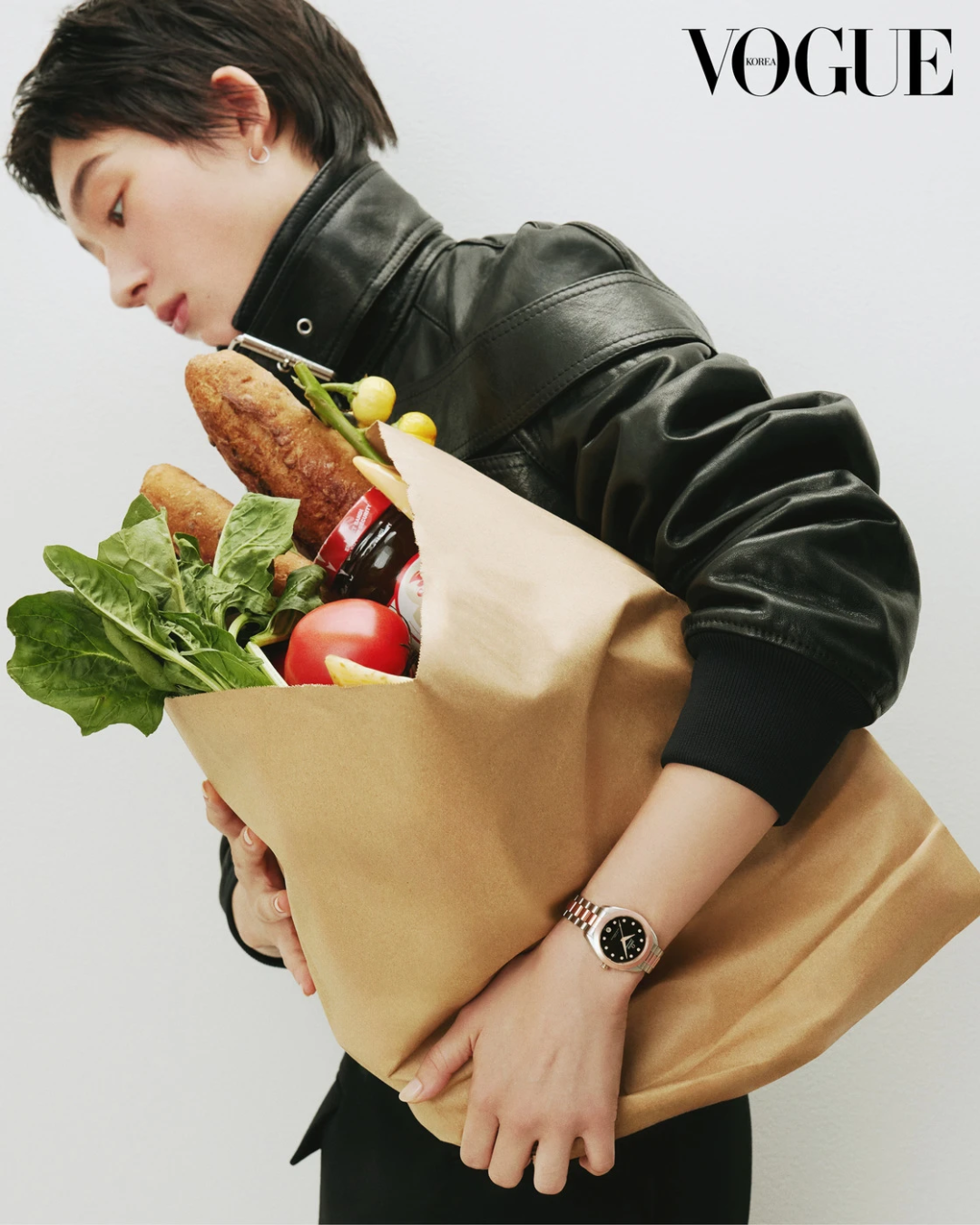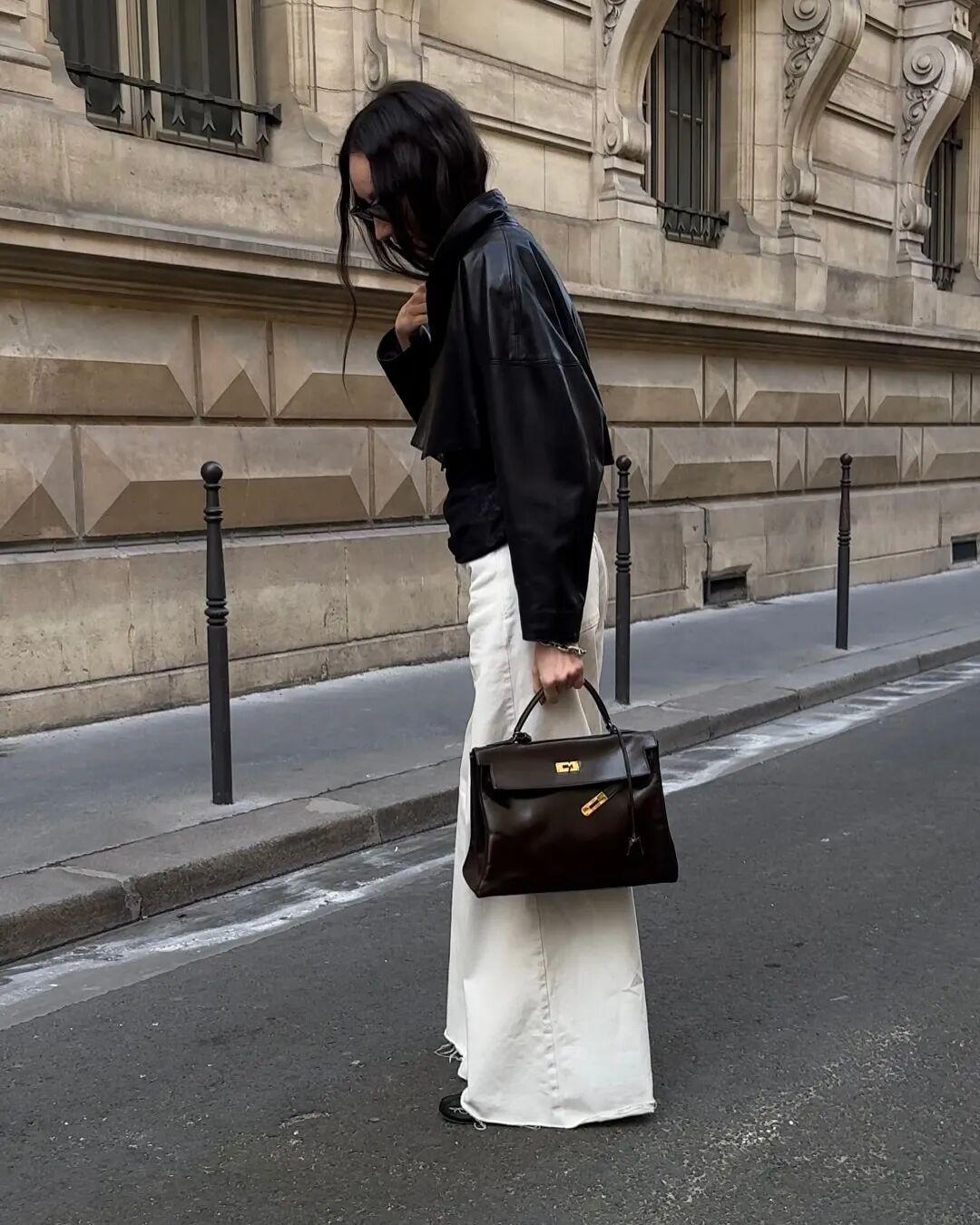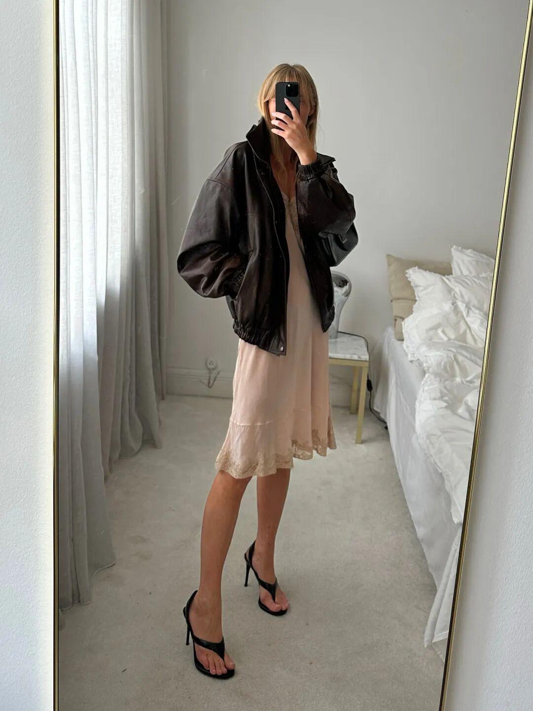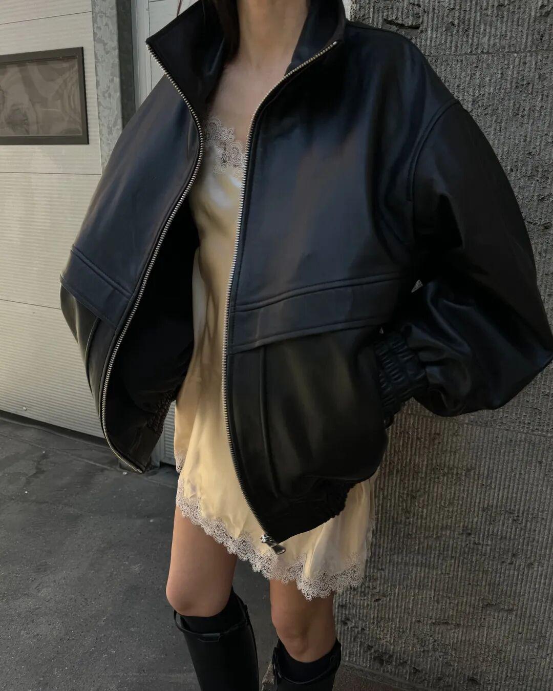 博主Beatrice Gutu最近很爱穿这件飞行员夹克,来自巴黎品牌Nour Hammour,皮衣是他家的拳头产品。▼