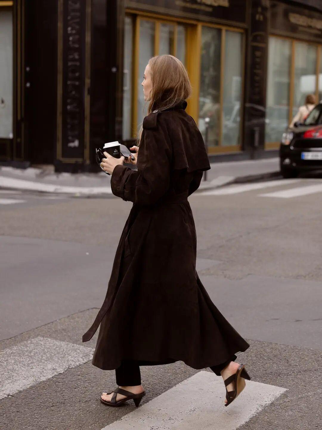 放假时候我刷了不少图,发现火的还是那些旧面孔:风衣、谷仓夹克、麂皮外套......但细看,这些“老朋友”还是换上了一点新装,这不,都把领子竖起来穿了。▼