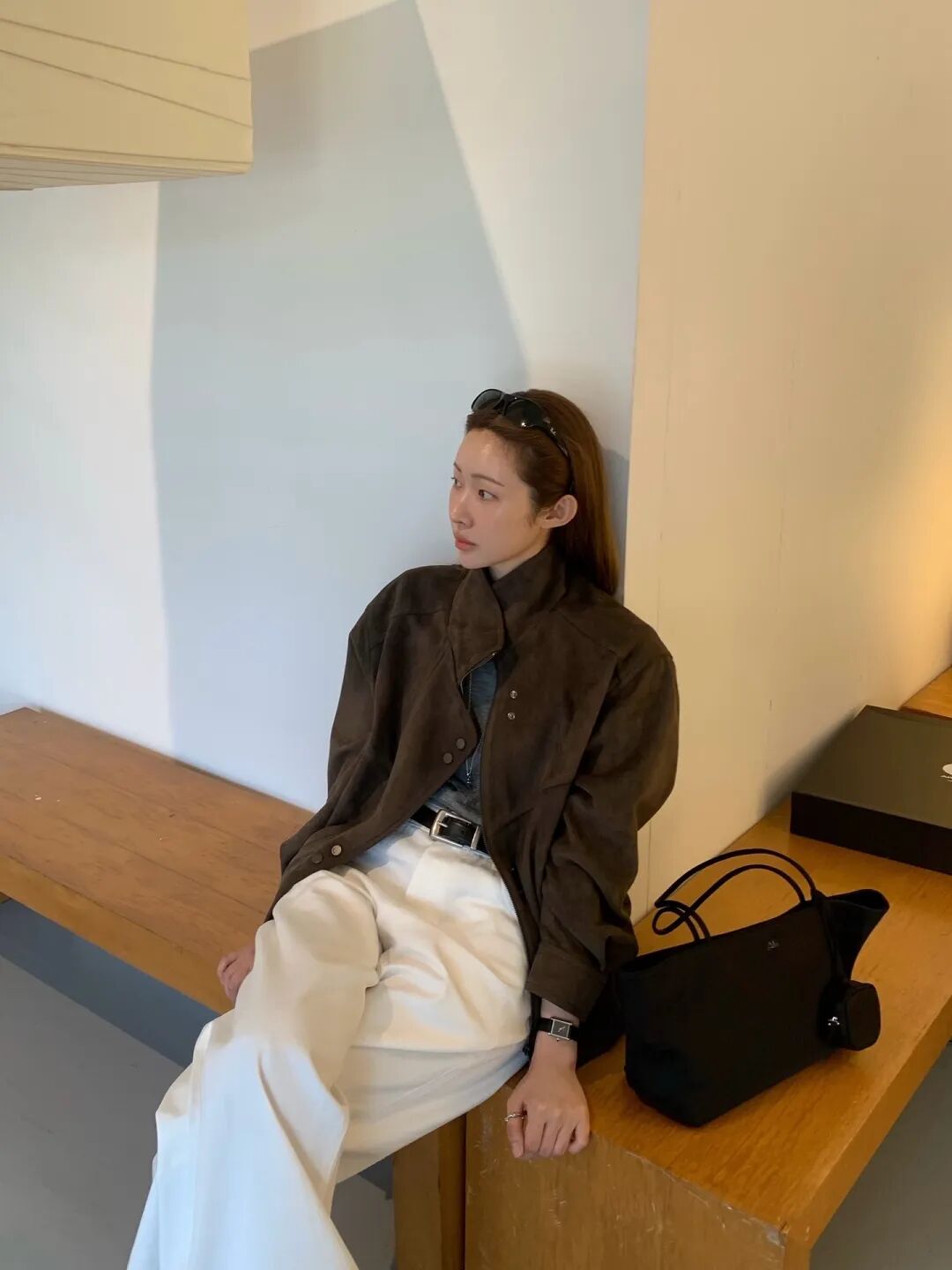 韩国博主Gyoe也爱这么穿,搭配小白鞋是一副舒适逛街的姿态~▼